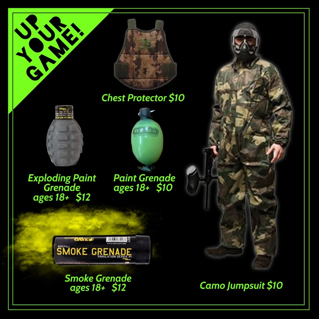 • We do offer camo jumpsuits or chest protectors for $10 each.